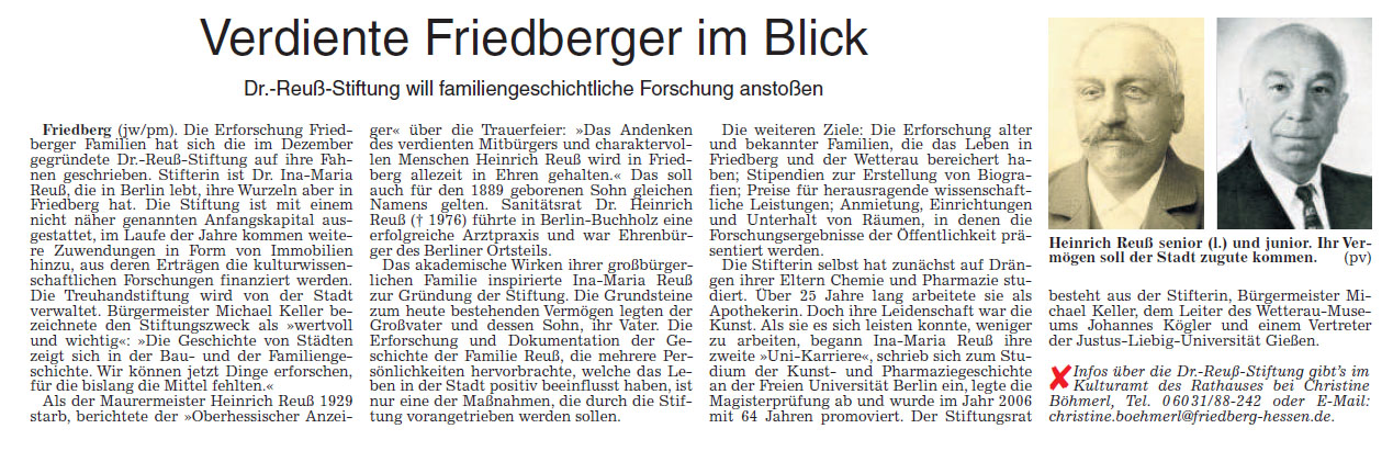 Artikel "Stiftung will Familien erforschen", Wetterauer Zeitung vom 10.05.2017