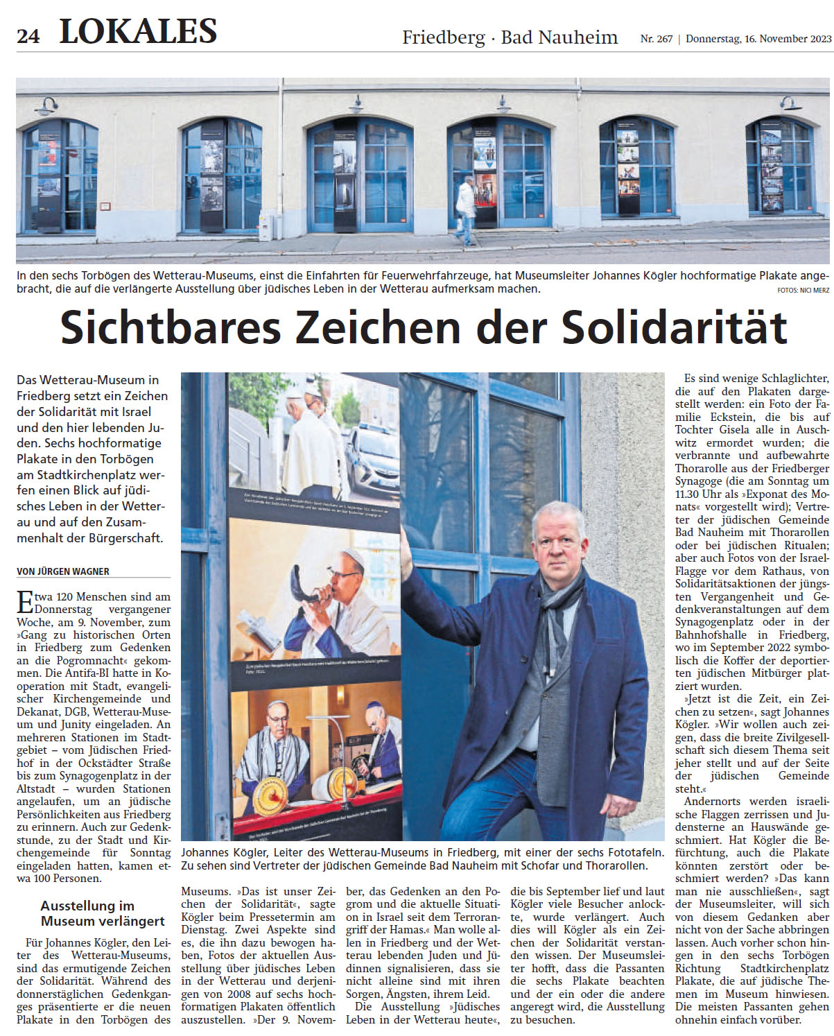 Presseartikel Wetterauer Zeitung vom 16. November 2023