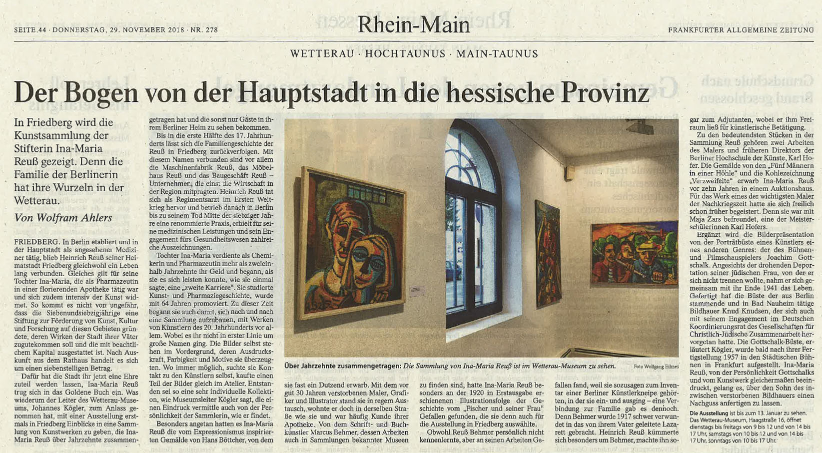 Artikel "Der Bogen von der Hauptstadt in die hessische Provinz", Frankfurter Allgemeine Zeitung vom 29.11.2018